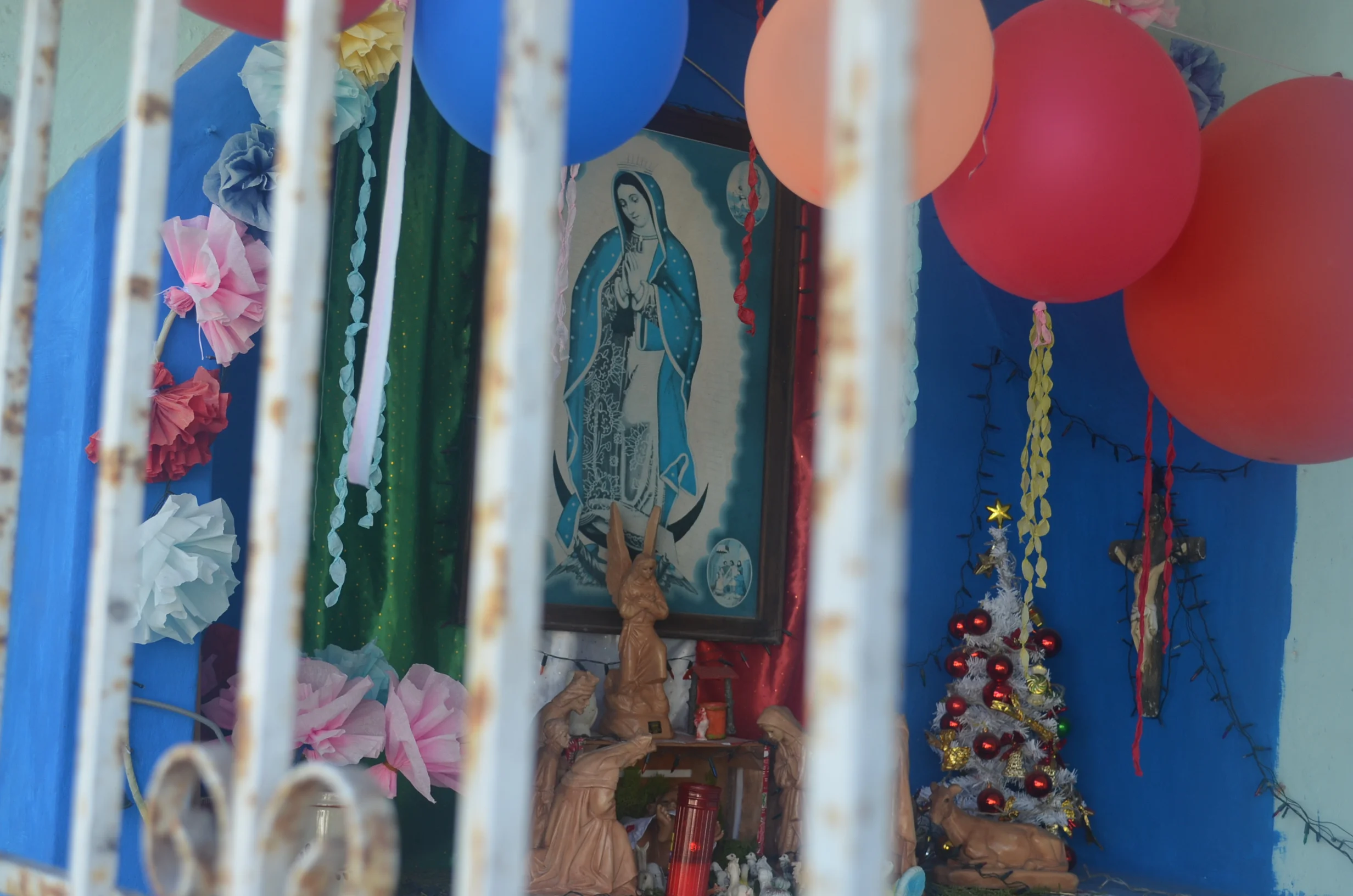 Looking into local houses, nativity scene and shrines in all. Gently swinging hammocks. Family all together at the dinner table. Madre pours coca cola into blue tumblers. Tables laid with bright colours, stitching and flowers.